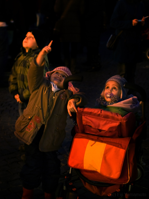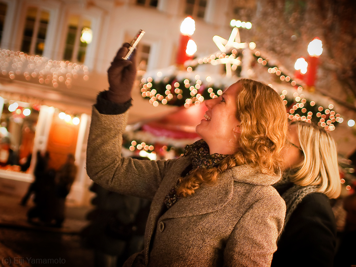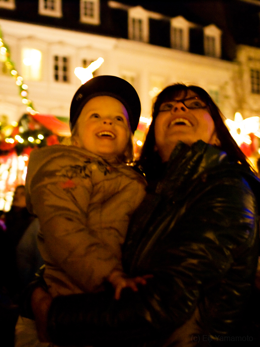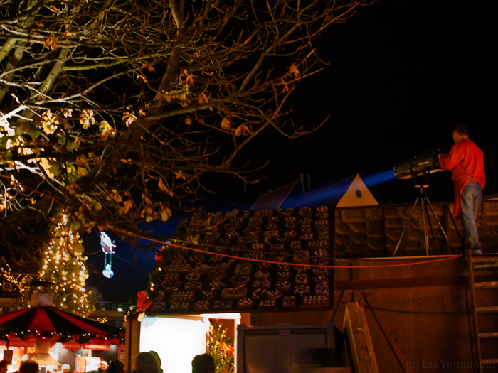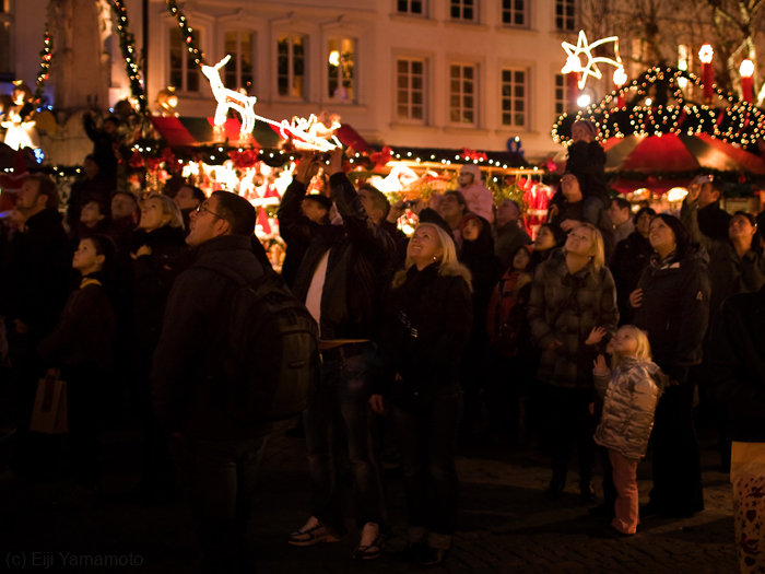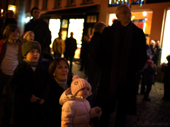 ドイツのこの街のクリスマスマルクト(クリスマスマーケット)では「空飛ぶサンタクロース」というイベントが催されました。大きな仕掛けも派手な演出もありませんが、素朴なもので大人も子供も楽しんでいます。人々の表情からは優しさが感じられ、そこから伝統的なクリスマスに対する意識が見えるのではないかと思いました。サンタクロース、ドイツ語ではヴァイナハツマンと言います。