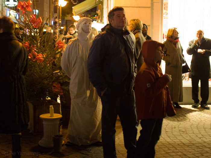 「空飛ぶサンタクロース」が始まる前、「大好きなヴァイナハツマン」の音楽が流れ、広場に人が集まってきます。街中でパフォーマンスをやっている人も一時中断して見に来ました。