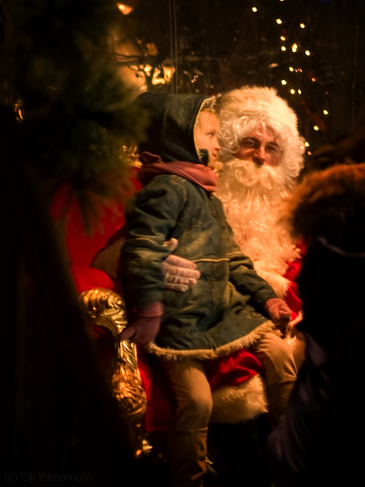 その後、ヴァイナハツマンは地上に降りてきて子供たちと一緒に写真に。緊張している子供ばかりです。子供や家族にとって一つの思い出になったかも知れません。
