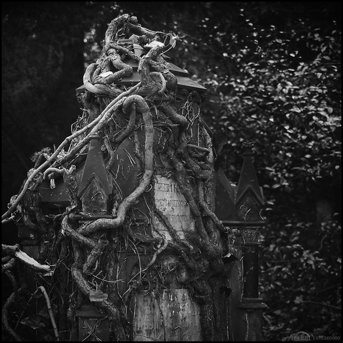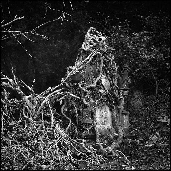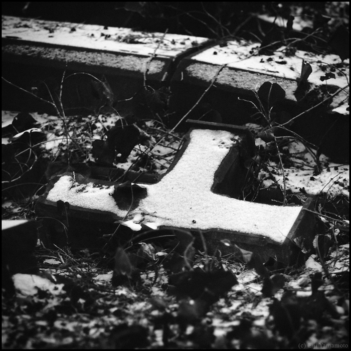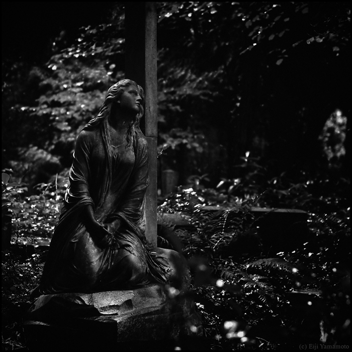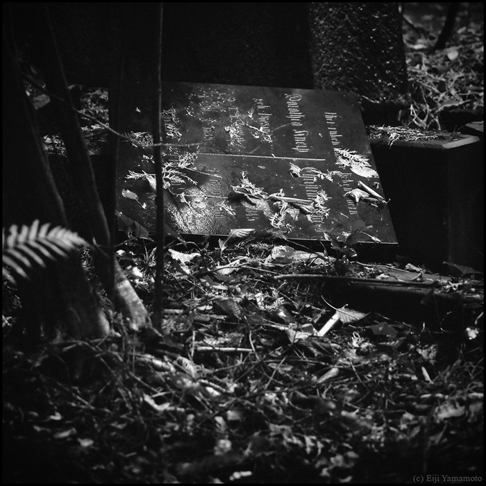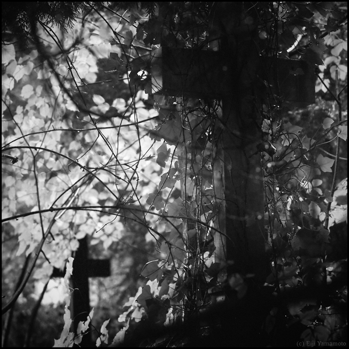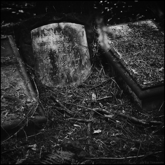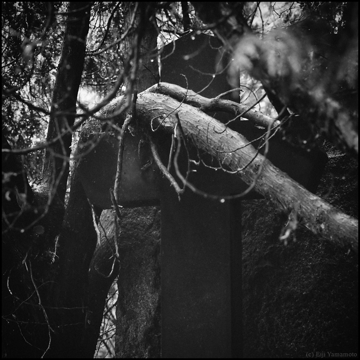 墓地は現在に生きる人とその人のルーツである過去を結ぶ場所だと思います。そして先人に何かの報告をしたり、会話をしたり、言い換えれば現在に生きる人の心のよりどころかもしれません。しかしそれを結ぶ墓石が風雨にさらされているのはどういったことでしょうか。家族や関わりある人は訪れないのでしょうか。100年以上前の墓碑は文字が消え、十字架は落ち、墓石は朽ちて、辺り一面には木々が生い茂っています。ここに眠る人たちの人生は何だったのか。その光景を見ると切なさや辛さ、嘆きに似た気持ちを覚えます。かつて人の想いがあった場所に今は人の想いはないのでしょうか。1年以上かけて撮影したもので、晴れの日だけでなく雨や雪の日もあります。